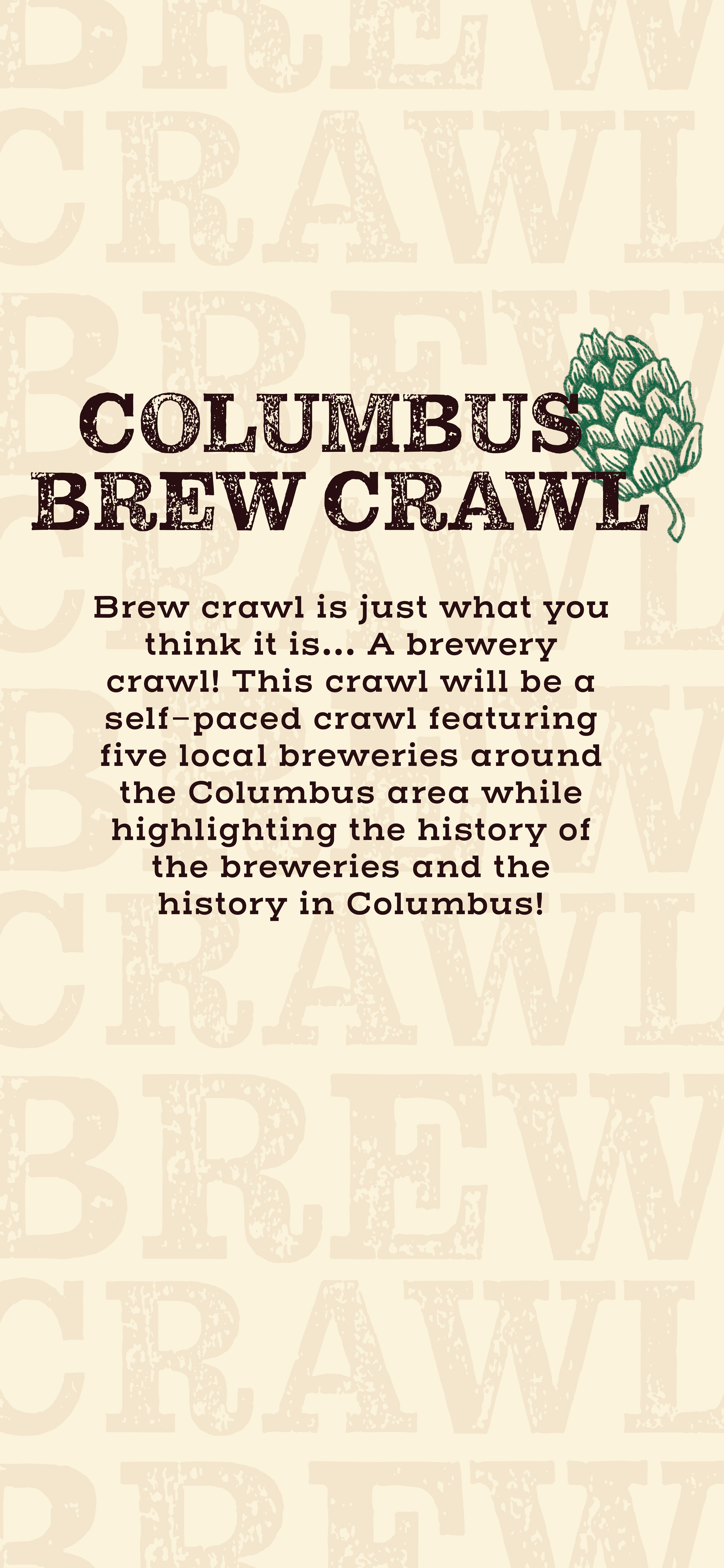 Columbus Brew Crawl is a self-paced brewery crawl featuring five local breweries in Columbus, OH: Land-Grant Brewing Co, Antiques on High, Parsons North Brewing Co, Seventh Son Brewing Co, and, Combustion Brewery & Taproom. It also featured the history of beer, beer culture & Columbus.