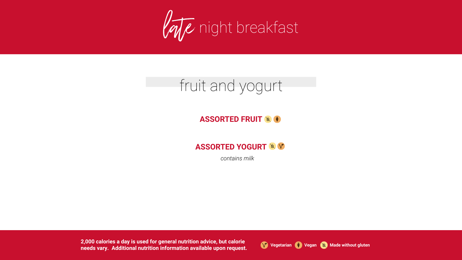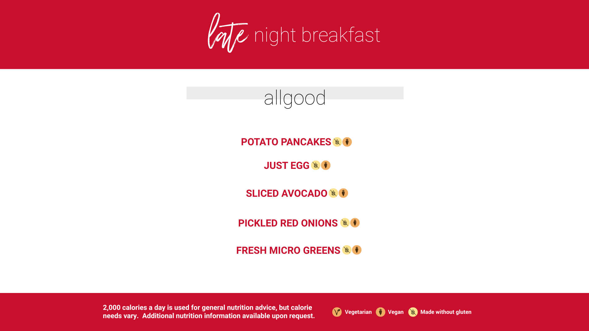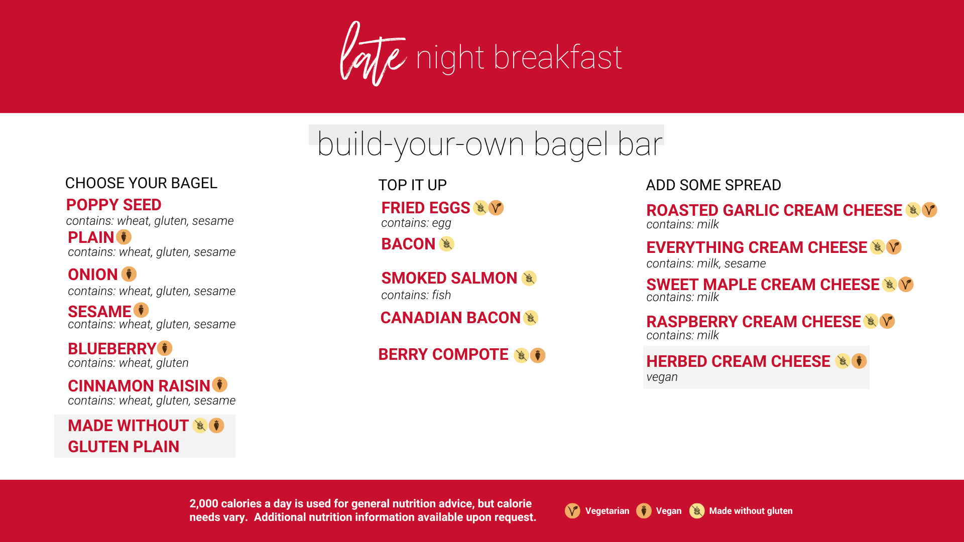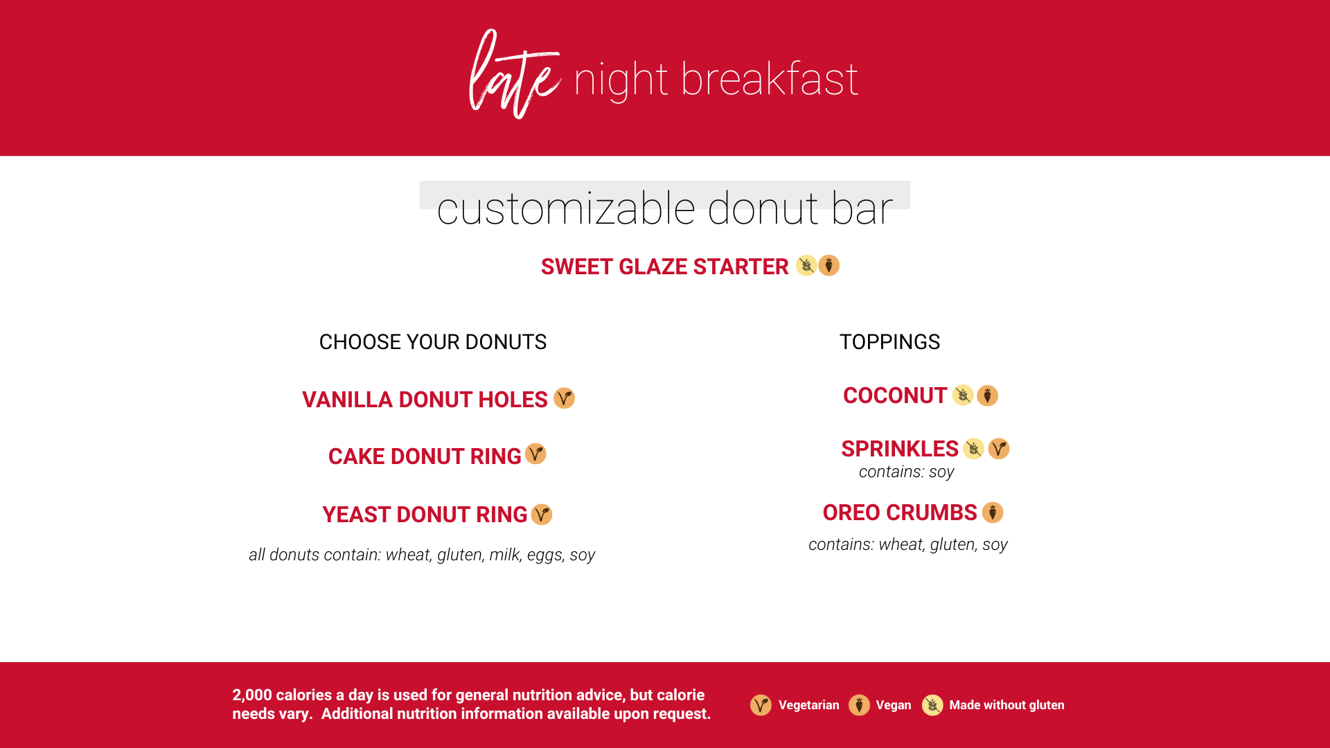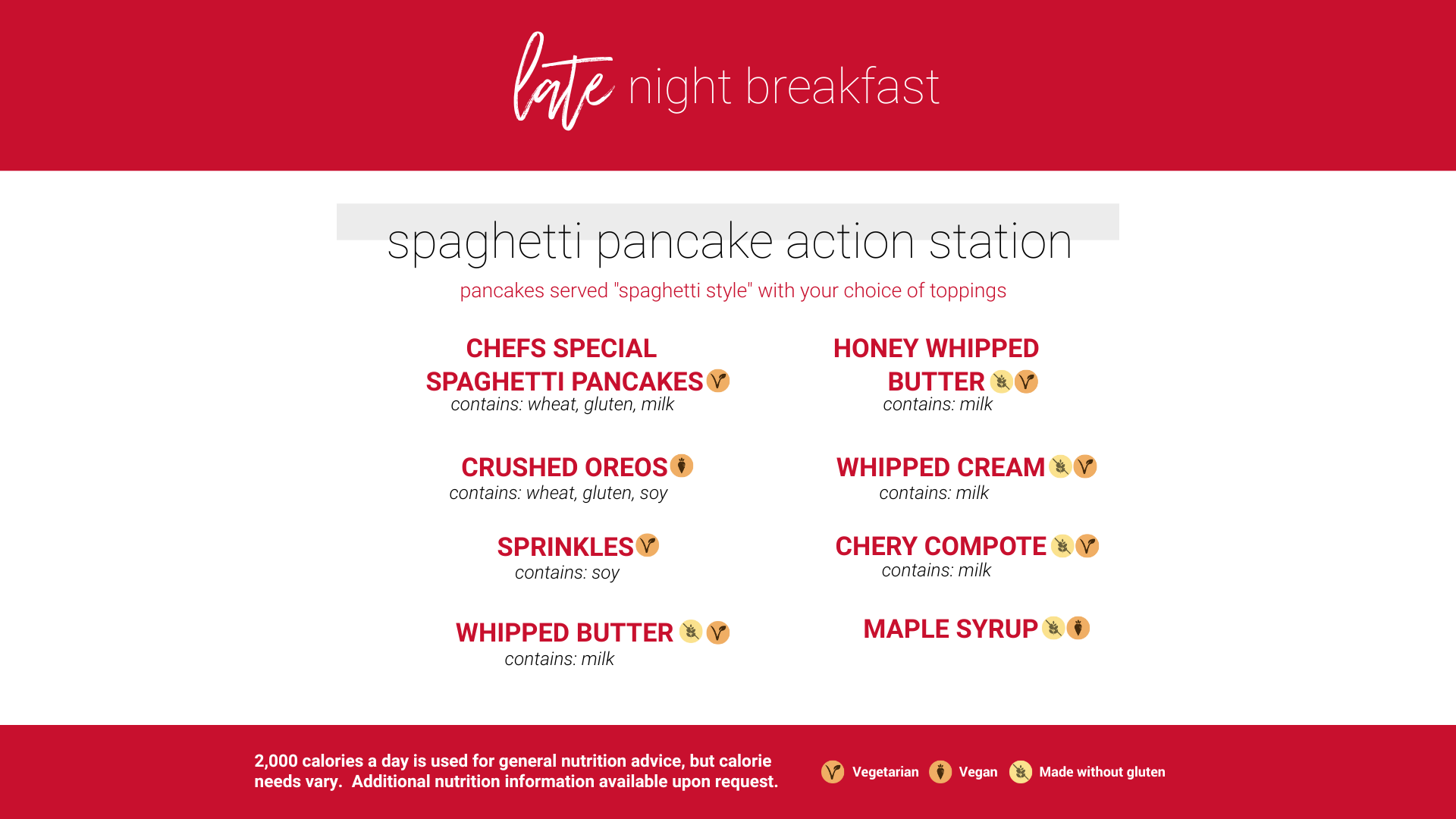 Above: Menu boards that were designed for the Late Night Breakfast for The Table at Curtis.