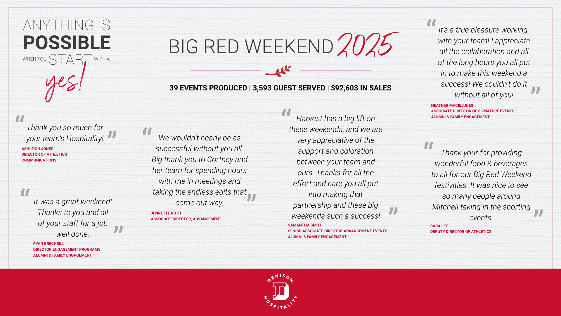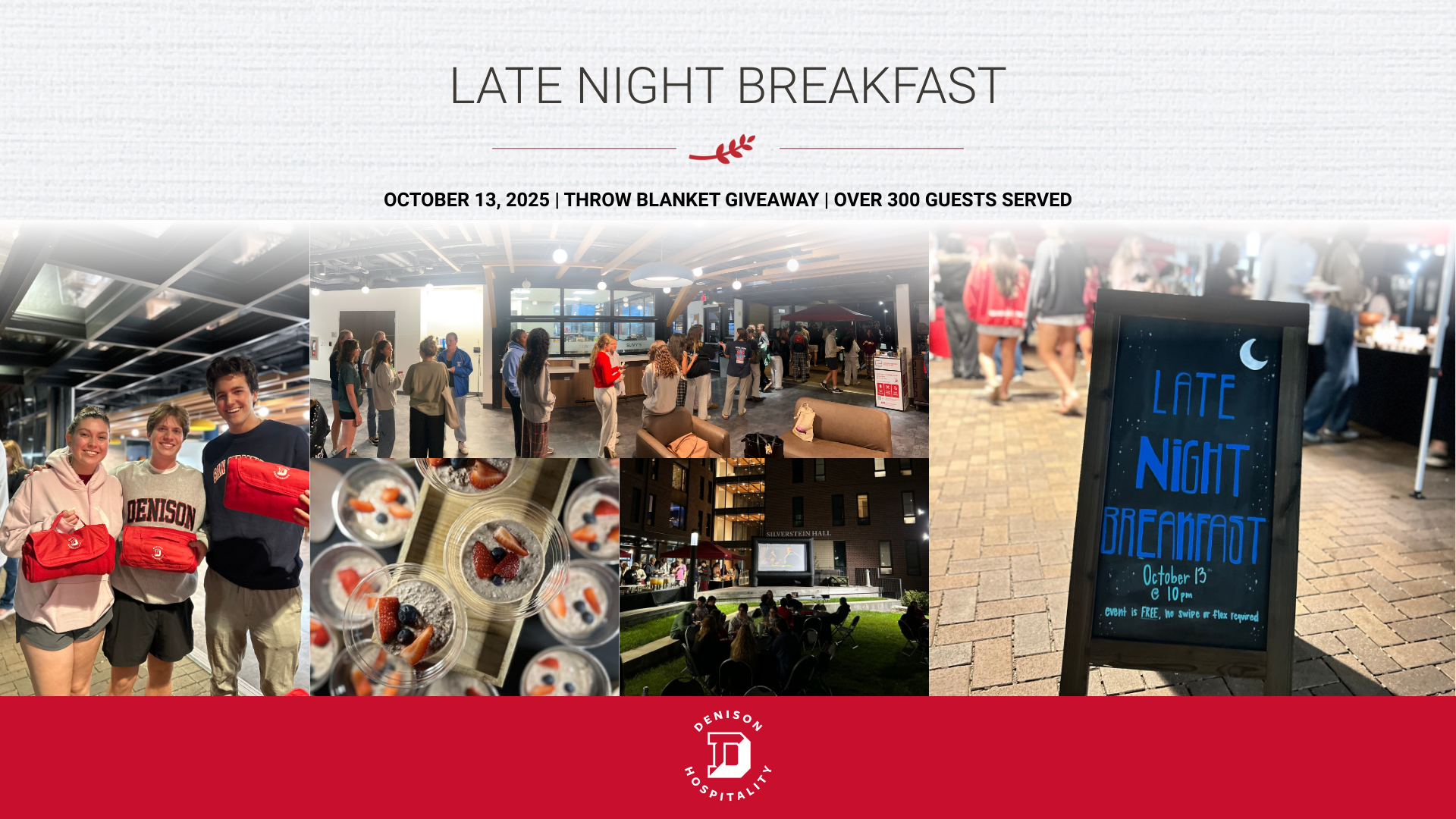 Below: Denison University clients asked we provide a graphic after we hosted Late Night Breakfast, to show the president how well the event went.